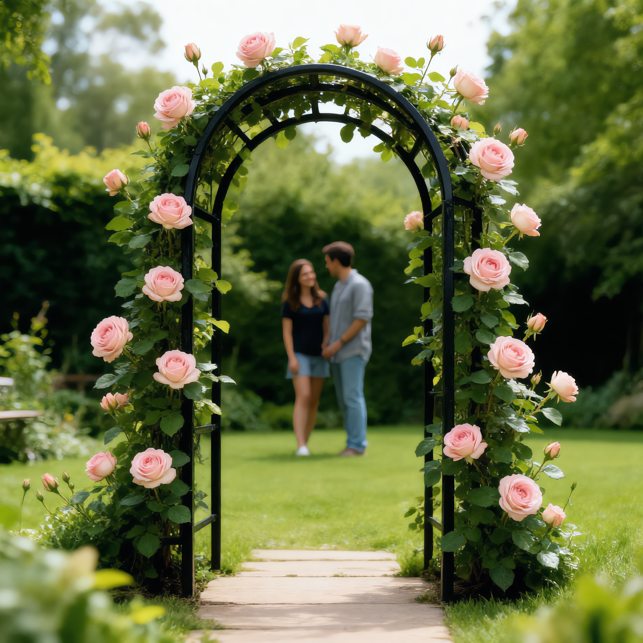 Dzięki swojej formie pergola tworzy stylowe przejście lub ozdobną bramę, która nadaje przestrzeni wyjątkowego charakteru. Solidna metalowa konstrukcja zapewnia trwałość i stabilność, a klasyczny czarny kolor doskonale komponuje się z zielenią roślin i aranżacją ogrodu.